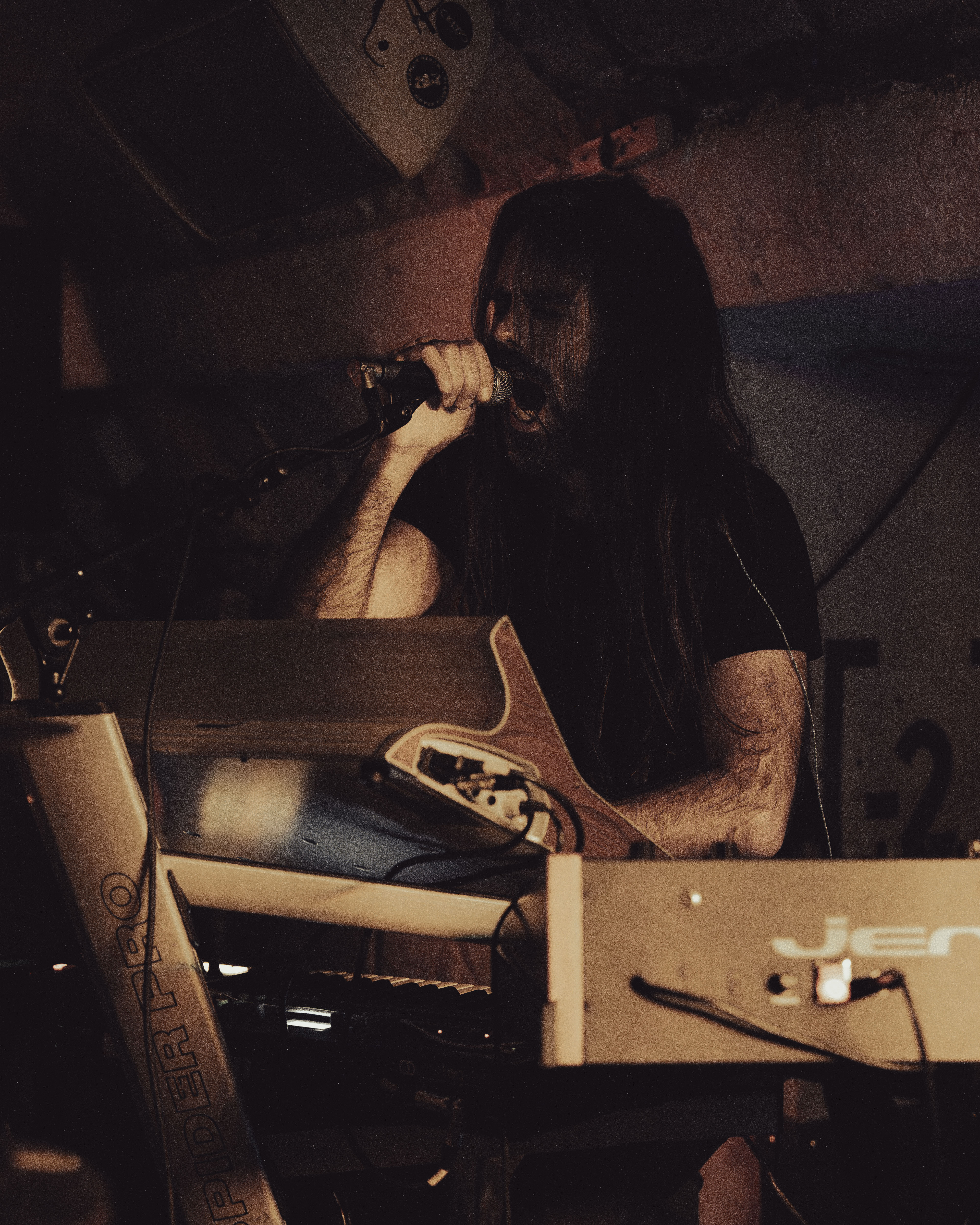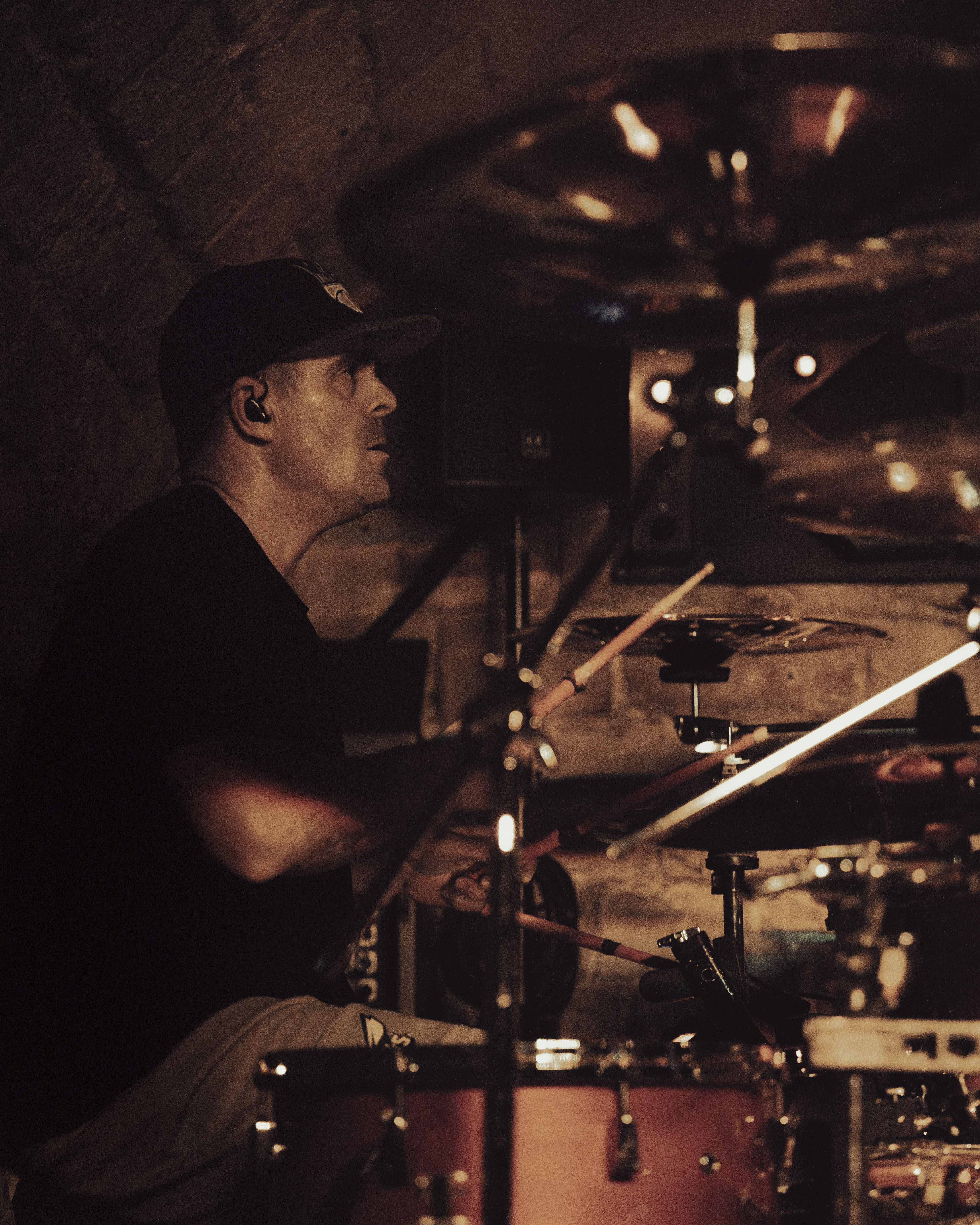 Ce qu'on avait eu pour le précédent… on avait eu du budget pour le faire. Sur le précédent, c'était la période du Covid, et on a été suivis par trois salles. Ça s'appelle les productions mutualisées. En fait, c'est trois salles, qui se mutualisent, et à elles trois, elles font un budget global sur un groupe. Et donc, tu axes… je sais pas, ça peut être de la scéno, travailler le son… Nous, on a travaillé le son, mais surtout, on a travaillé les lumières. Et donc, avec ce budget on a pu bosser avec nos techniciens, et puis surtout avec Romain, qui est un gars… qui a bossé avec Gojira, avec plein de groupes. Il est avec des groupes américains maintenant. C'est un mec qui touche vachement. Il a tourné avec Perturbator aussi, c'est lui qui a fait toute la scéno, l'ancienne scéno, l'espèce de grande chapelle en LED. Donc on a bossé avec lui sur le show précédent. C'était cool. Là, sur cet album-là, on n'est plus DIY. Là, on fait un peu plus au fur et à mesure. On a moins de moyens d'entrée de jeu pour construire tout ça. Ça va prendre un peu plus de temps.