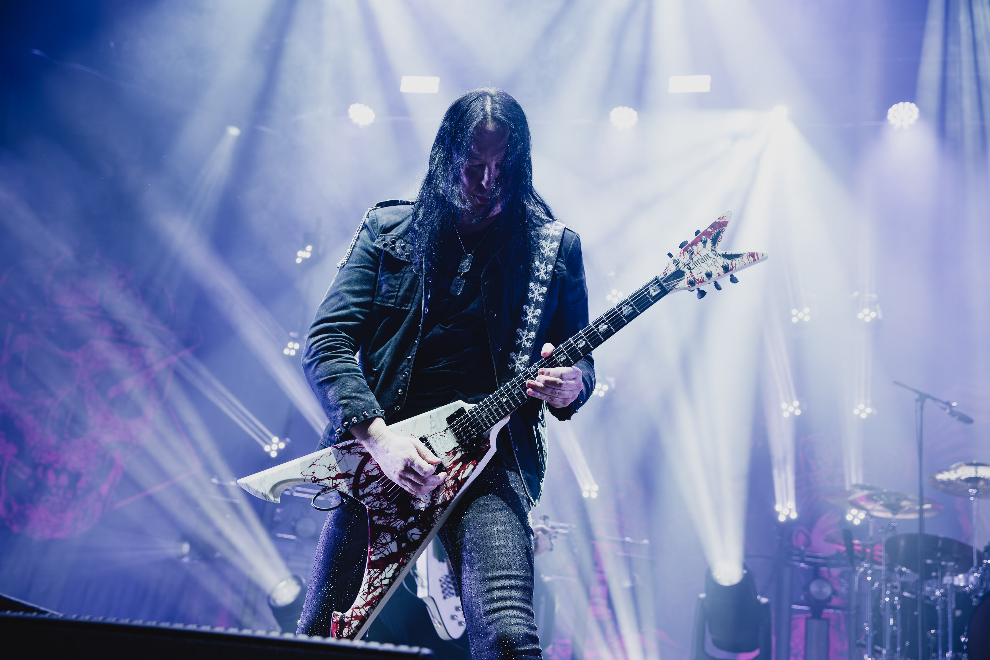 La communion atteint son apogée quand Alissa brandit le drapeau frappé du symbole du groupe. Le Zénith entier reprend les refrains de Nemesis et Fields of Desolation, dans une ferveur presque religieuse. Les solos d’Amott sont d’une précision déconcertante, le talentueux guitariste Joey Concepcion (présent depuis 2023) s’intègre parfaitement, et la rythmique d’Erlandsson ne faiblit jamais. À la basse, Sharlee D’Angelo impose toujours autant de charisme et de groove, ancrant la puissance du groupe dans une cohésion sans faille. J’ai eu la chance de le photographier dans un tout autre registre avec The Night Flight Orchestra, un contraste musical saisissant, mais qui montre à quel point ce musicien est complet et inspiré.