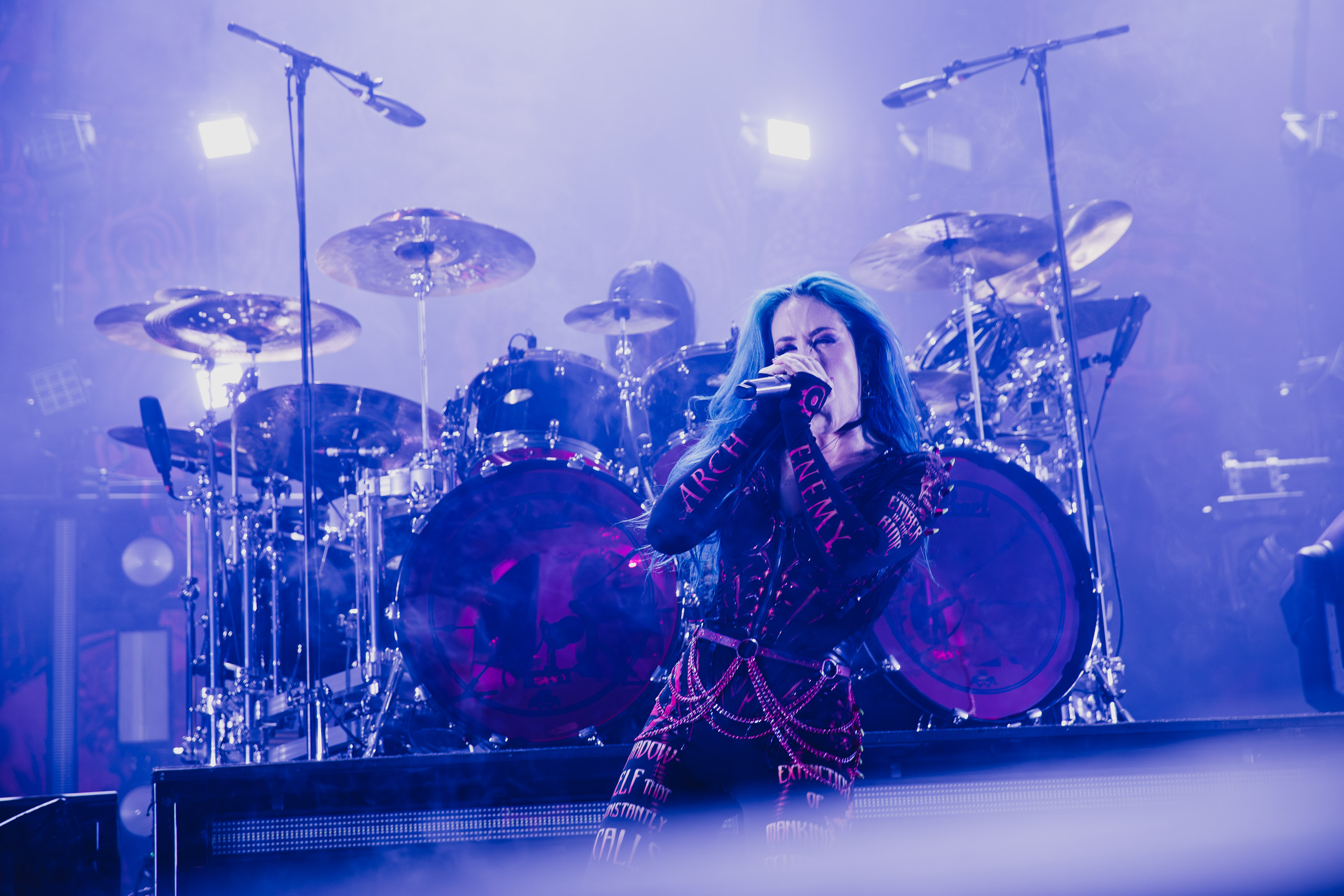 L’attente était palpable dans la salle. Après une première partie déjà intense menée, il était enfin temps d’accueillir les maîtres du death metal mélodique : Arch Enemy.