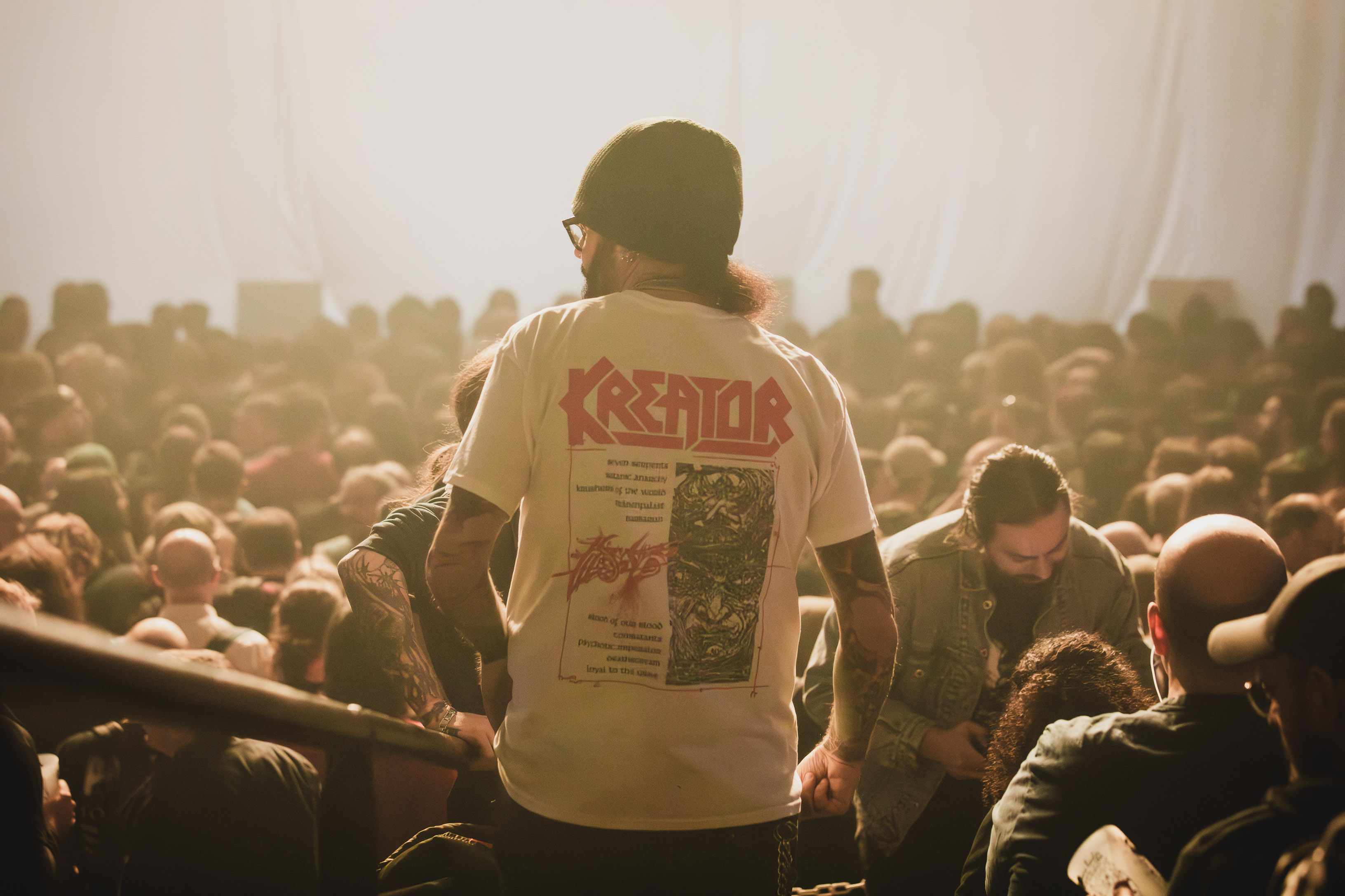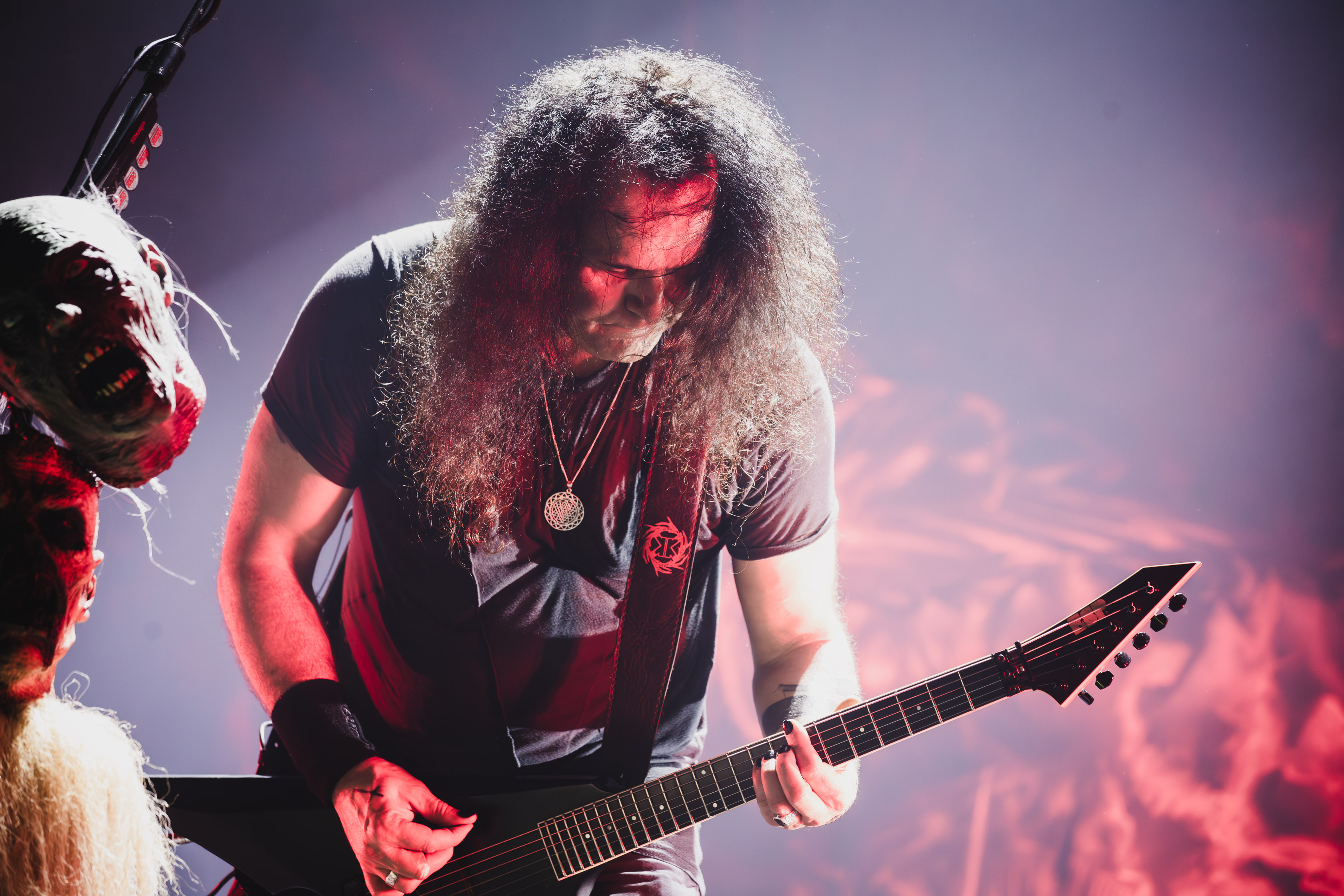 Un quartet de choc donc pour un set qui ne l'est pas moins. Quelques titres du tout dernier album « Krushers Of The World » sorti en janvier et dont le visuel décore tout le fond de scène. Mr Petrozza va aussi revisiter une dizaine d'opus de la carrière de Kreator qui s'étale sur près de 45 ans. Les meilleurs moments du concert seront sans aucun doute les très attendus « Pleasure To Kill », « Endless Pain », « Enemy Of God », « Hate Über Alles », « Hordes Of Chaos » et « Violent Revolution ». Ca slamme dur dans la foule et on verra même un ou deux circle pits et walls of death dans un Zénith chauffé à blanc.