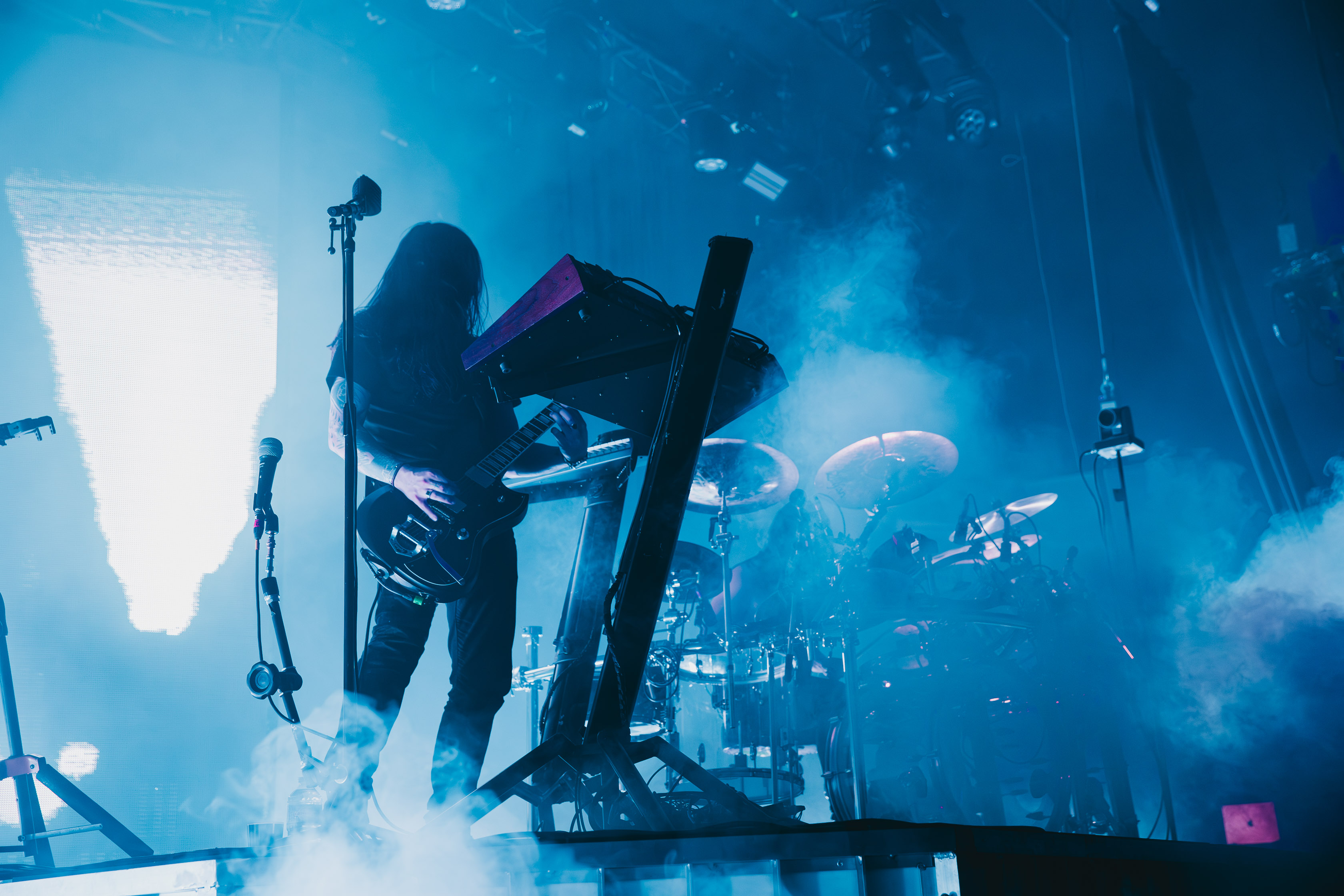 Mais retournons à notre concert du vendredi 5 décembre 2025. L’ouverture est confiée à Kaelan Mikla, un groupe dark wave islandais. 3 femmes pour un set sombre et immersif digne d’une grande messe nocturne. 2026 sera consacré à la production de leur cinquième album. Un groupe à suivre pour les aficionados de nappes atmosphériques glaciales.