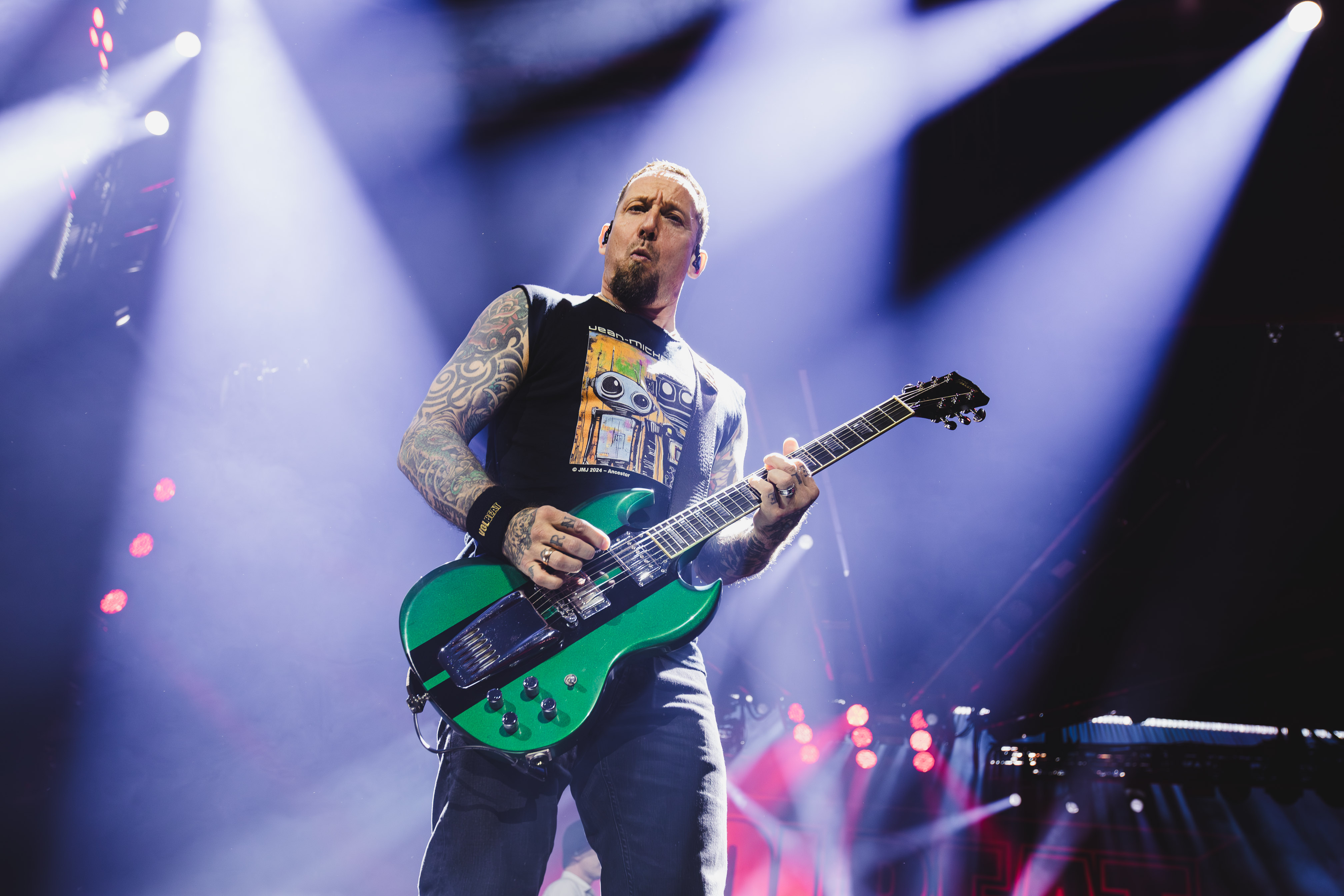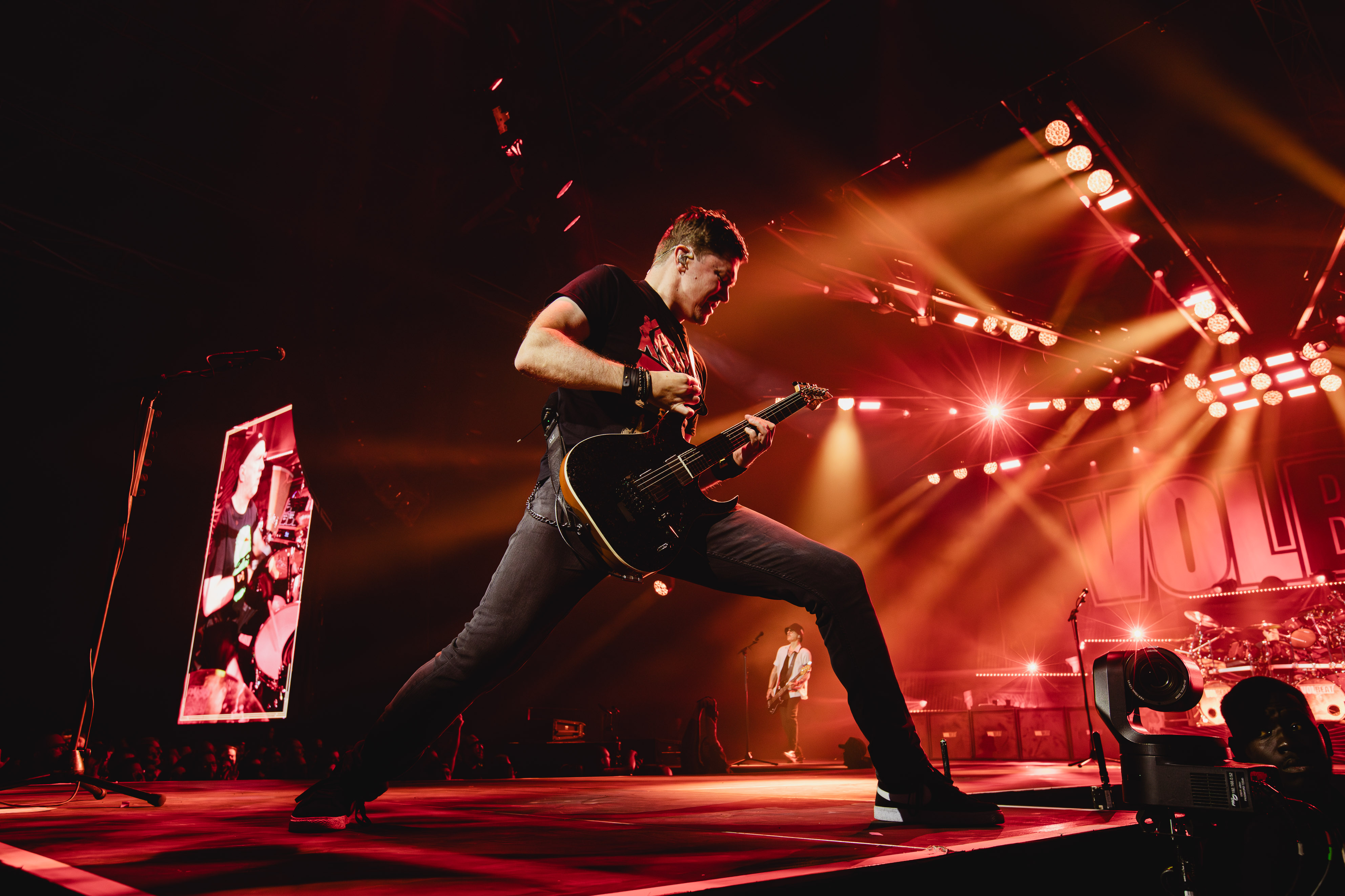 Zénith de Paris, 2 novembre 2025. Après une première partie menée tambour battant par Witch Fever et un show énergique des icônes UK 90’s Bush — qui, soit dit en passant, m’ont fait une excellente impression (cf. notre live report sur notre page Instagram) — place aux Danois de Volbeat, qui entrent en scène à 21h10 tapantes avec leurs 25 ans de carrière et 9 albums studio à partager!