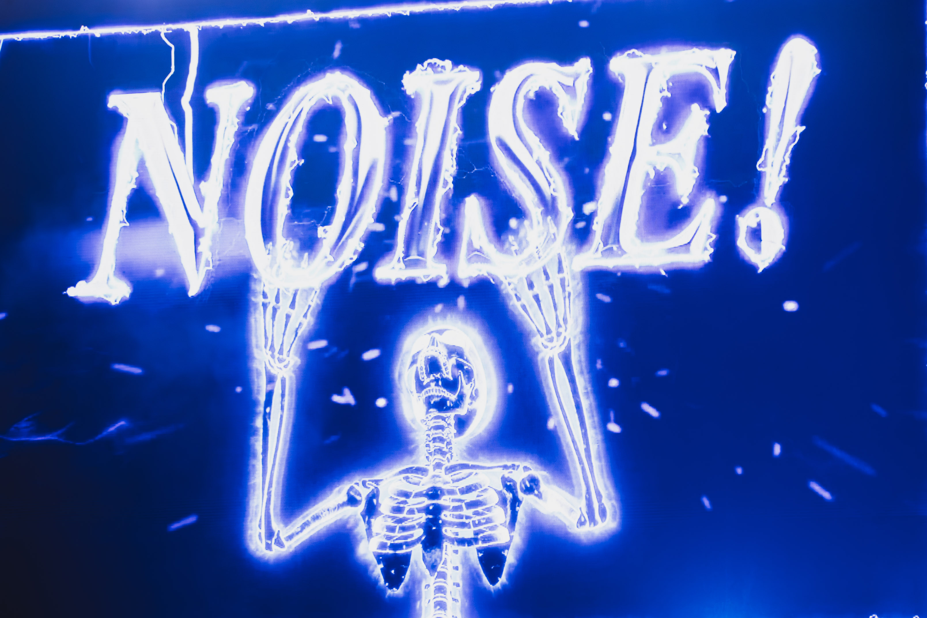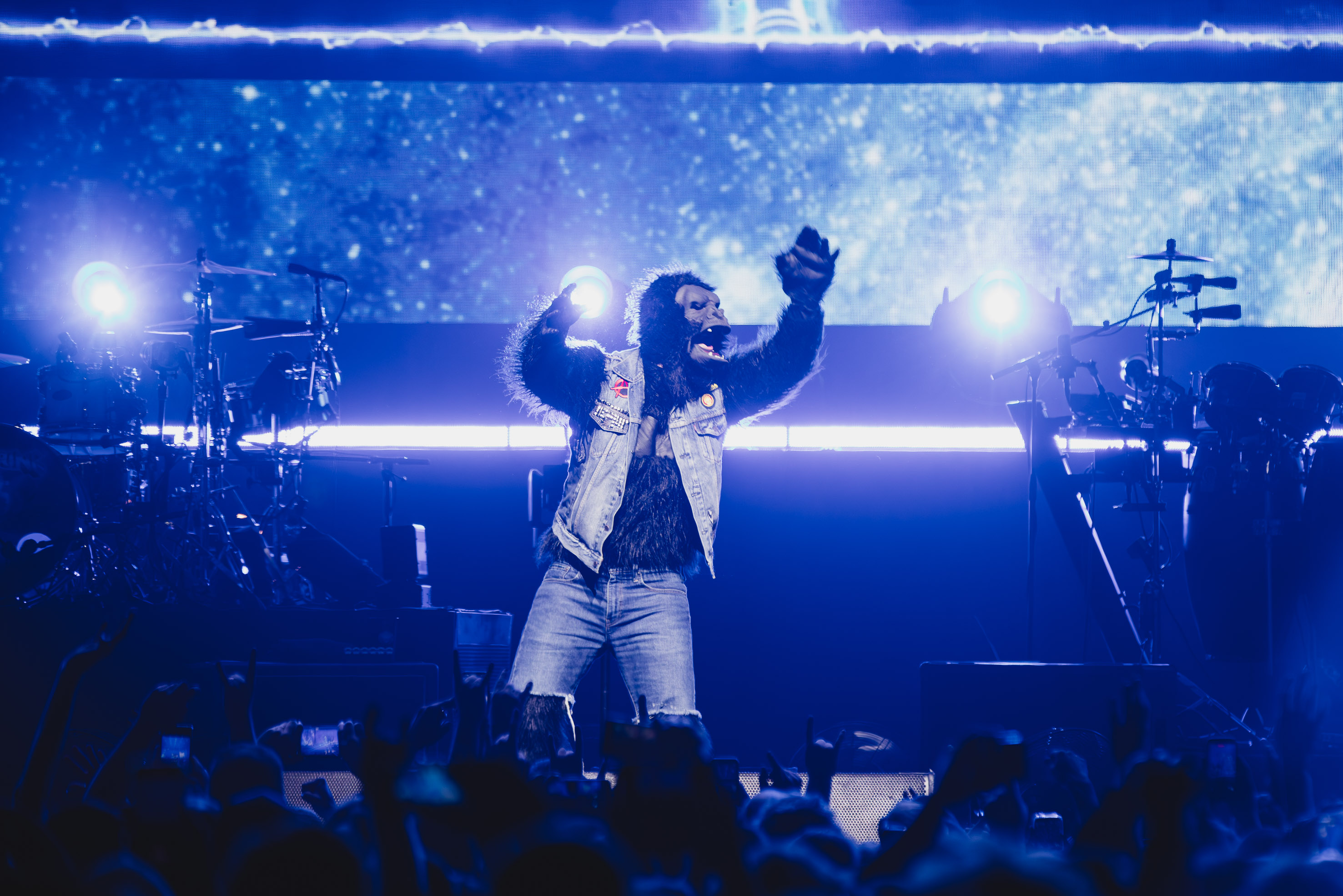 Deux squelettes géants surgissent sur la scène, emblème de la pochette de ce dernier album, tandis que des écrans géants alternent entre gros plans sur les musiciens et animations au coeur de leur univers.