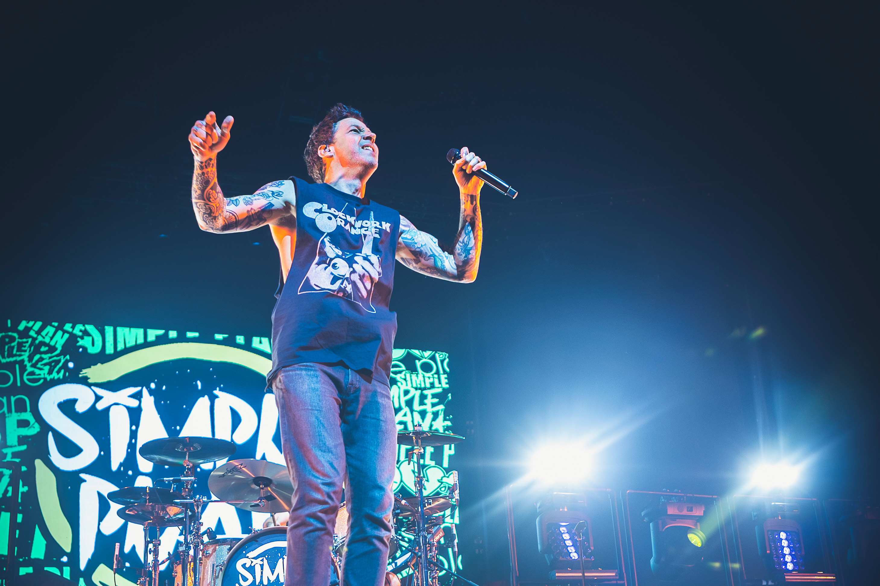 Retour à l’insouciance de toute une génération à l’arrivée du groupe sur scène. Déjà plus de 25 ans d’histoire musicale entre nous, comme le rappelle Pierre Bouvier, lead singer. T-shirt Orange mécanique sur le dos pour lui, ou hommage à Céline (F*cking) Dion pour Jeff Stinco (le guitariste), chaque teenager qui sommeille en nous se réveille au son de leurs chansons cultes et de leur énergie intense, joyeuse.
