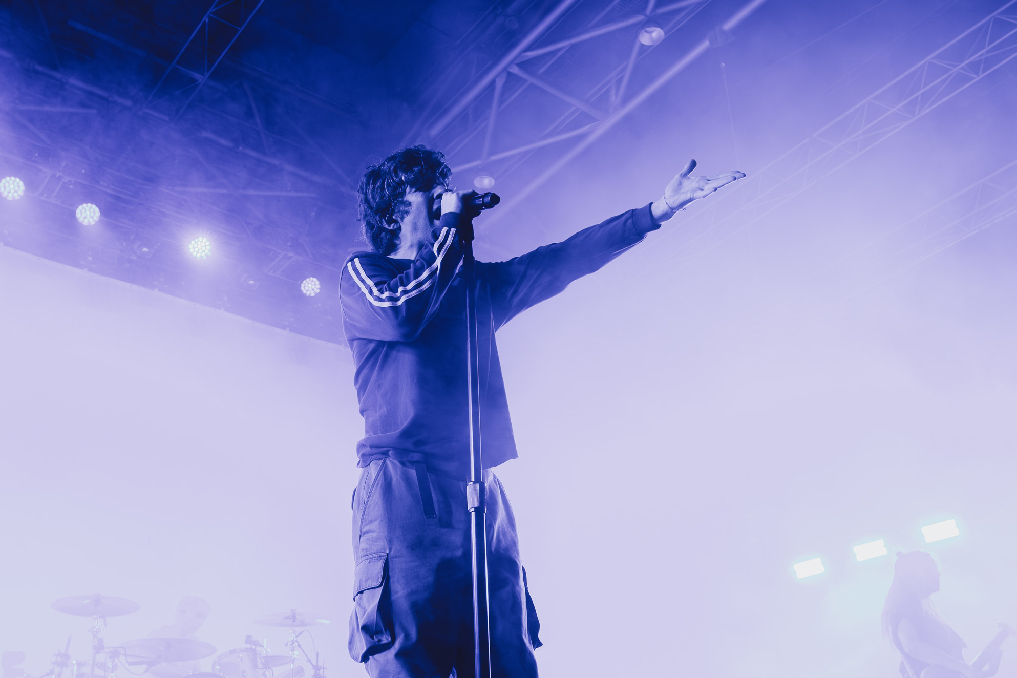 Mais avant de vibrer avec Turnstile, deux beaux noms ont ouvert comme il se doit la soirée. Les Anglais de High Vis et les Californiens de The Garden. Tous deux connaissent une certaine notoriété et une curiosité grandissante. Deux sets d’une intensité bien distincte, du post punk anglais à vif au flamboyant et grandiloquent clown core, rock expérimental, ska punk et autres fusions de genres. La musique de frères Shears de The Garden ne laisse pas indifférent et déroute, tout comme leur présence scénique, véritables bêtes de scène : le batteur troque son kit de batterie contre des roulades au sol et quelques parties râpées.