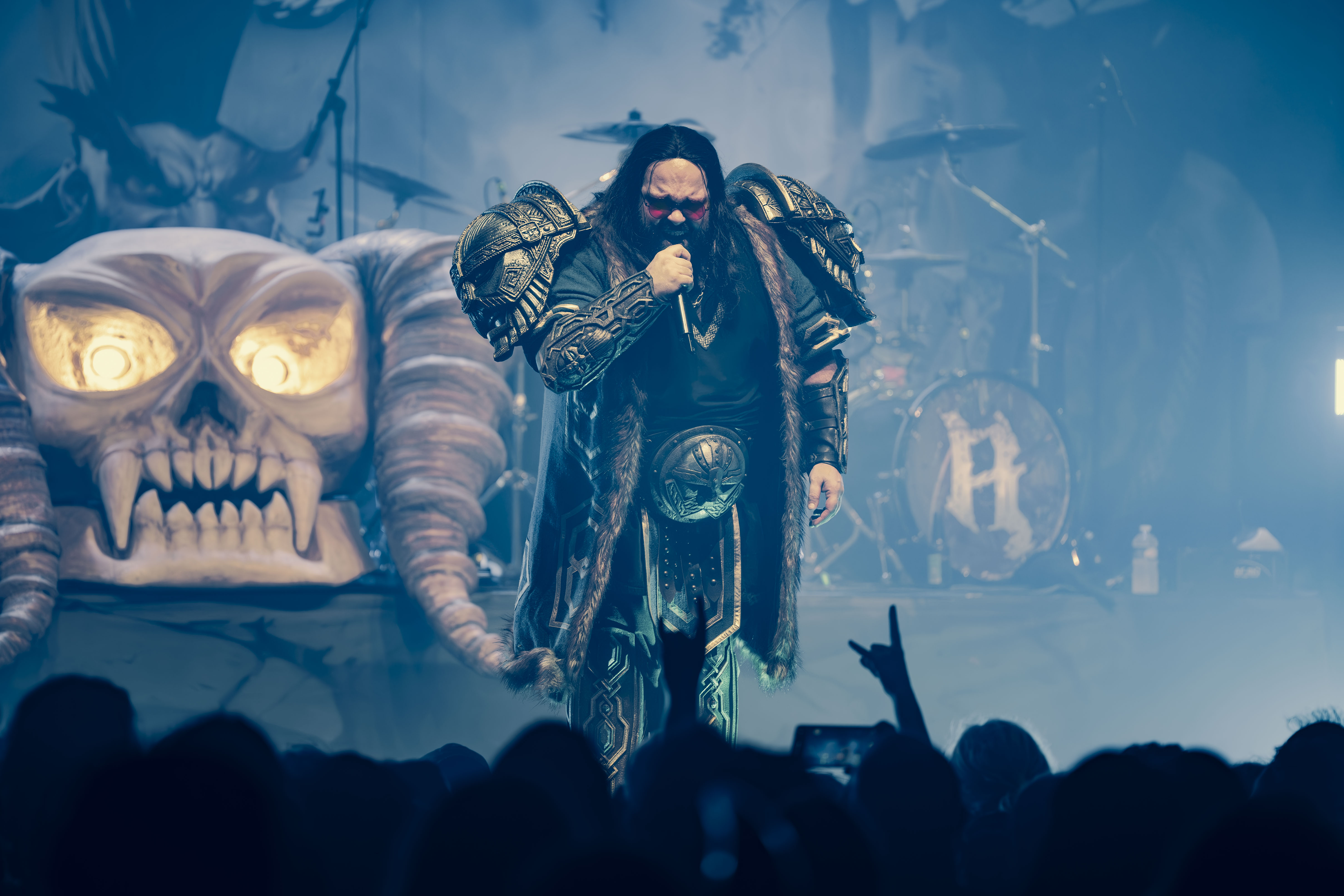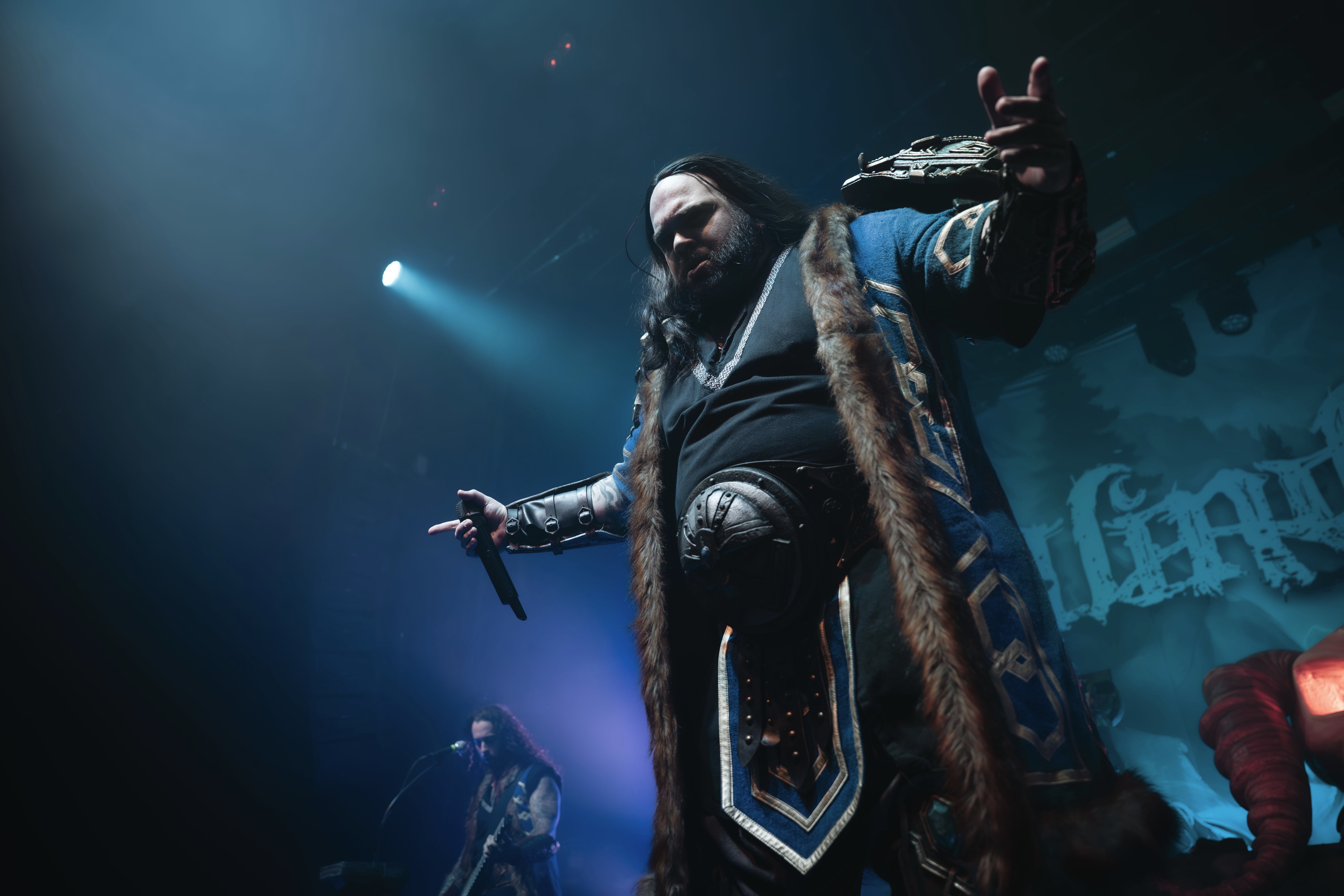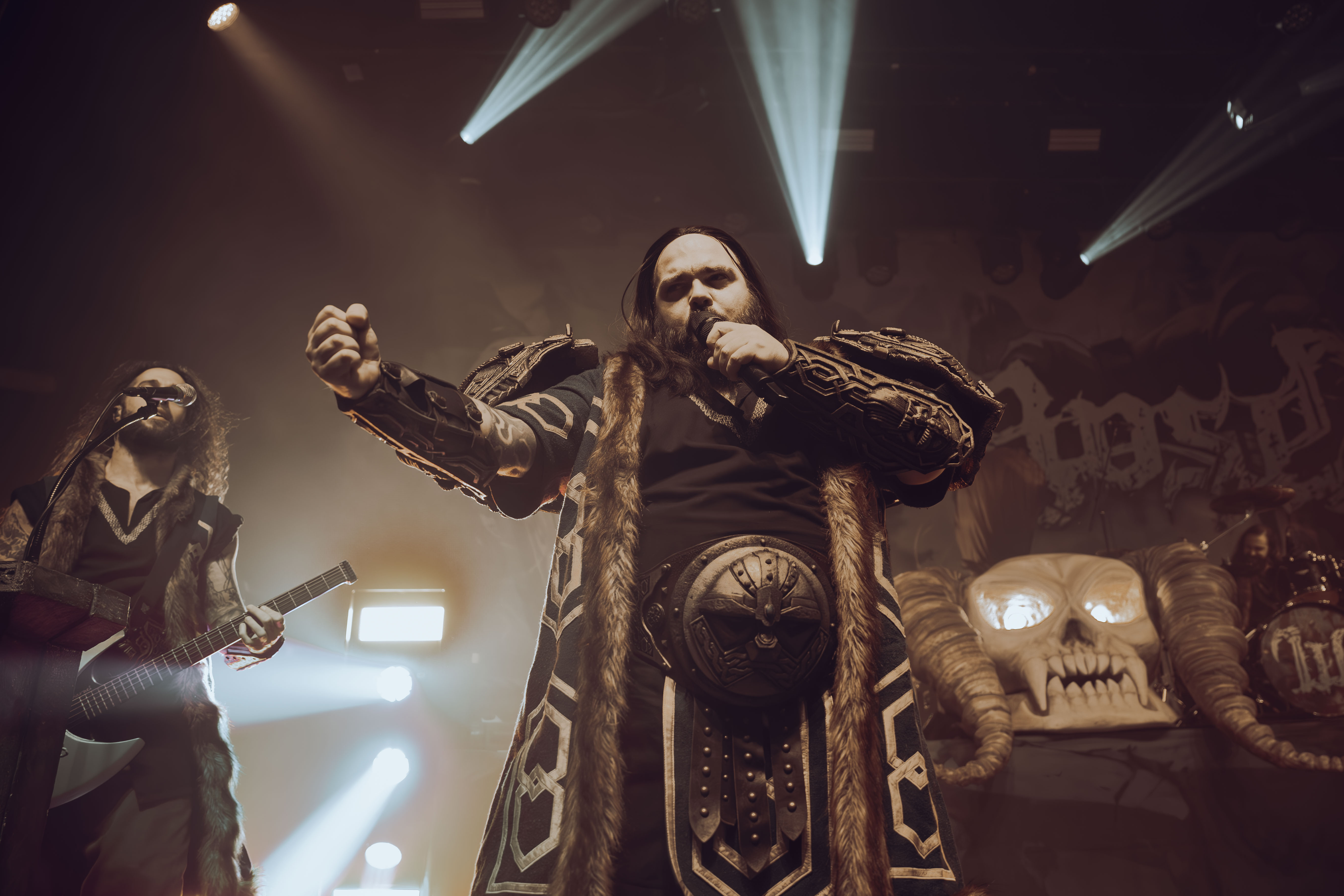 Et voilà que se termine l’ultime entracte pour ceux que nous attendions tous, nos braves nains sous la montagne, prêts à jaillir des trous qui sont dans le sol. C’est dans l’obscurité bleutée de la salle que résonne le sample des notes cristallines de Of Ice And Blood, le morceau introductif de l’album Trollslayer sorti il y a déjà plus d’un an et que le groupe vient promouvoir à l’occasion de cette tournée déjà mémorable.
